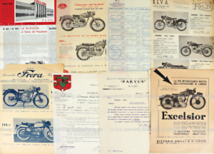 Mixed lot of 12 pieces, including e.g.: Single sheet brochure with technical data Ceccato; 1935 folding brochure A.J.S.; folding brochure Moto Guzzi models 1929; single sheet brochure Frera Milano; single sheet brochure Mondial ca. 1953, partly with minor damages, otherwise good condition...Italian text