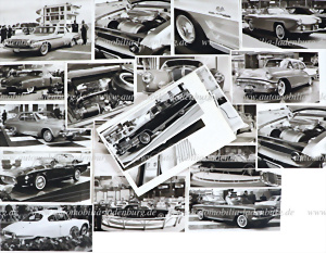 Large mixed lot of 75 pieces of original b/w photos (Dr. Seifert) of automobile exhibitions 1950-60s, among others Chrysler Turbine Car, Boano Lincoln Indianapolis, Chevrolet "Sting Ray", Buick Skylark, Plymouth Fury, Dodge Dart, Ghia Chrysler-Valiant Asimmetrica, Panhard CD Coupe, Daimler Regency, Ford Crown Victoria, Cadillac Eldorado etc., various formats, backs stamped and inscribed. Formats, backs stamped and written on