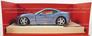 Model car Ferrari California, manufacturer "Hot Wheels", on leather display, with applied badge "Ferrari California", 1:18, in original box, very good condition.