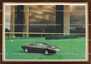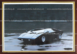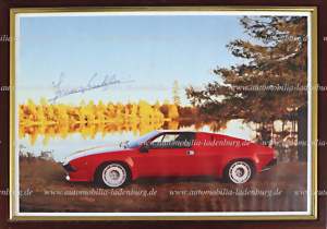 Hand-signed photo print Lamborghini Urraco signed by Ferruccio Lamborghini, framed, 25,5x35cm