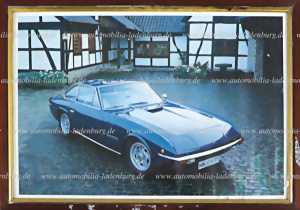 Hand-signed photo print Lamborghini Islero , signed by Ferruccio Lamborghini, framed, 25,5x35cm