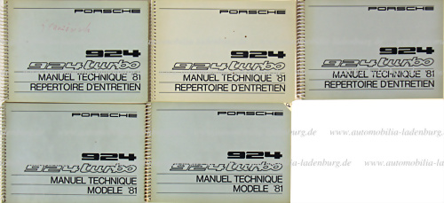 mixed lot of 5 operating manuals, Porsche 924 turbo, French version 1981, "Manuel Technique Modele '81 Repertoire d'Entretien", 2x 200 9/80, 3x 1,650 6/80, partly with notes, minimal damage