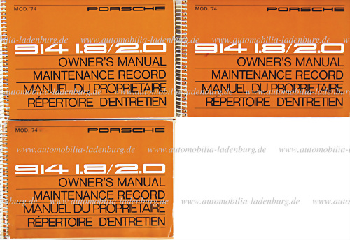 mixed lot of 4 operating manuals, Porsche 914 1.7/2.0 and 914, models 1973 and 1974 (2 issues each), English issues "Driver's Manuel", good condition