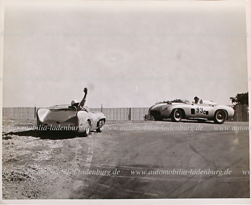 Original b/w photo Pete Lovely on Ferrari 860 Monza (#0604M), Prelimiary Laguna Seca 1958, 20,5x25cm, stamped "George Robitschek"