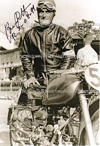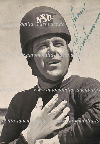 Hand-signed original b/w photograph, three-time world champion Werner Haas, 14.8x10.5cm, inscribed on the reverse
