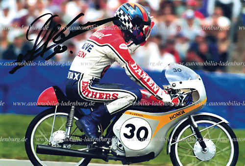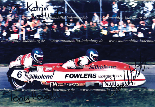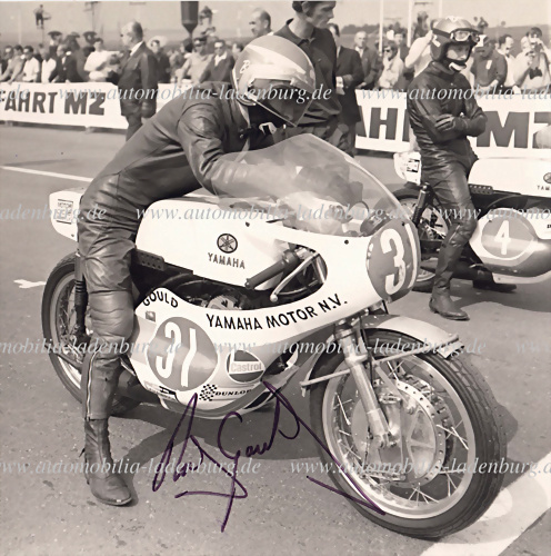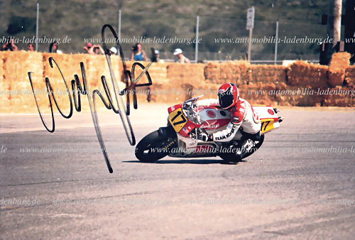 Hand-signed color photograph, world champion Tom Herron (1976), fatal accident at the Isle of Man TT 1979, 13x7cm, inscribed on the back