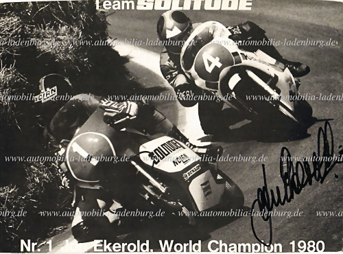 Hand-signed b/w autograph card, World Champion John Ekerold (1980), 11x15cm, inscribed on the back