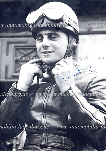 Hand-signed b/w photograph, three-time world champion Bruno Ruffo (1949/50/51), 15x10cm, labeled on the back