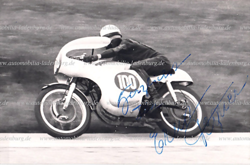 Hansigned original b/w photograph 1961, world champion Ernst Degner (1962), 9x14cm, reverse inscribed and stamped "Karl Gebhardt"