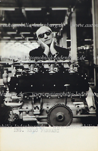 Original b/w Enzo Ferrari portrait photo engine production, 14x9cm, nice shot