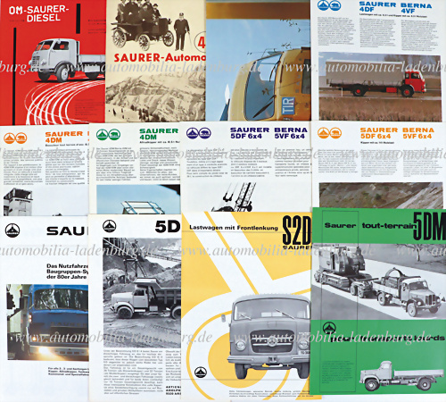 Mixed lot of 22 sales brochures Saurer 30s-80s trucks & buses, including vehicles with front-wheel steering; 5DM; S2DF; 5D; 5D 6x4; 5DF / 5VF; type LC1-OM...
