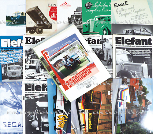 Mixed lot of 24 sales brochures buses 90s-2000s, e.g. Neoplan and Drogmöller, plus some newspapers e.g. "Elefant - Zeitschrift für historische Nutzfahrzeuge"; some color photos; "Lyra - Zeitschrift der Tiroler Museumsbahnen"...; Alusuisse M5438; "Muesée des Transports Urbains"...