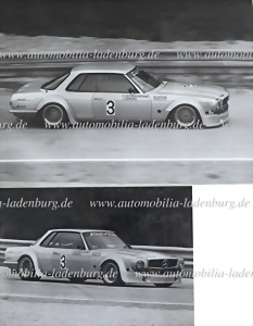 Mixed lot of 2 original b/w photographs Clemens Schickentanz / Jörg Denzel on Mercedes-Benz 450SLC, Salzburgring, 12.5x18cm, and 18x24cm