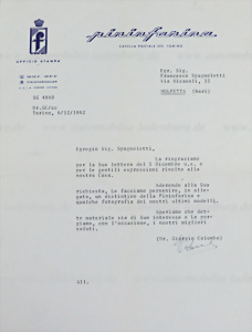 1962, letter from Pininfarina to customers, here Pininfarina thanks for the kind words and confirms the sending of some photos, as well as a Pininfarina badge, dated 06.12.1962, signed by Dr. Giorgio Colombo