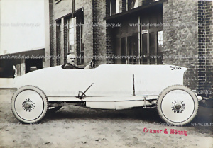 ca. 1919, original b/w photo / factory photo, Ernst Lehmann on Selve 6PS racing car, 12x17cm, stamped "Cramer & Mönnig", very rare