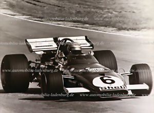 Original b/w photo Jackx Ickx on Ferrari 312, GP Belgium 1968, 18x24cm, back stamped "A.H.Rottensteiner", small scratch in the picture, otherwise good condition