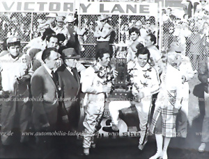 Original b/w photo award ceremony 6 hours Daytona 1972, the winners Mario Andretti and Jacky Ickx on Ferrari 312BP (#0888), 18x24cm, stamped "Attualfoto"