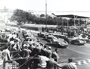 Original b/w photo starting scene Napoli Grand Prix 1958, among others Jo Bonnier on Maserati 200S; Luigi Musso on Ferrari Dino 206S (#0740); Wal Ever on Maserati A6GCS/53..., 18x24cm, stamped "Foto Troncone Napoli"
